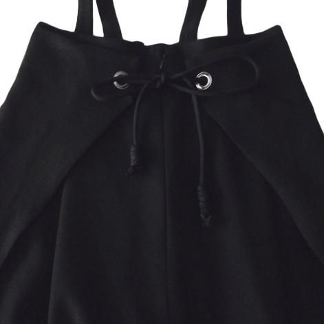 トップスをオーバーで合わせることができるので、コーディネートの幅が広がります。ウエスト周りはすっきり細身ですが、ラップ風のデザインで体型カバーしてくれます。フロントファスナー、ショルダー2段階調節のボタンホール付き。