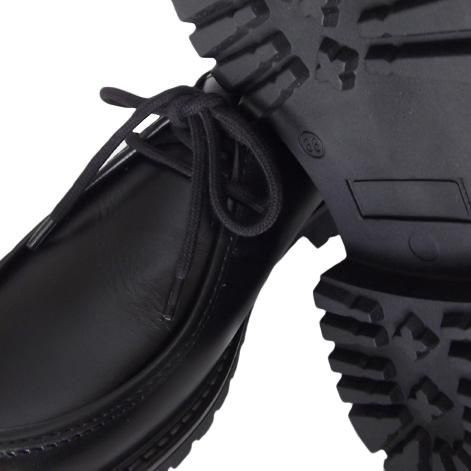 丸みをおびたモカシン縫いのアッパーに厚みのあるトラックソールを合わせており、トラッドでありながらモードな印象も兼ね備えています。足元にボリューム感が出てトレンド感のあるスタイリングになります。パンツ、スカート問わず色々なボトムにコーディネートしやすく、スニーカー以上、ドレスシューズ未満で汎用性が高いところが魅力のシューズです。ソール約3.5cm