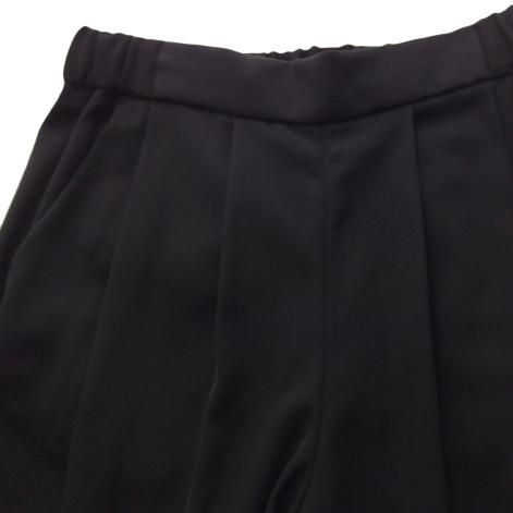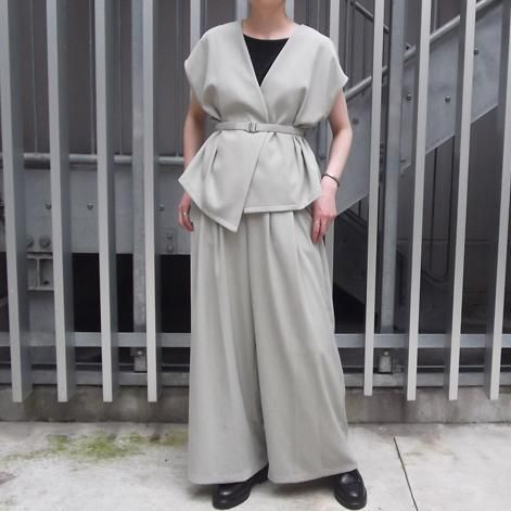 ハイウエストで丈を長めにデザインしており、トップスをインにすると脚長効果大。ウエストにタックを入れたワイドシルエットですが裾の幅をしぼっているのですっきりとした印象に。ウエストはゴム入りのイージー仕様。カジュアルからきれいめまで幅広いアイテムとコーディネートしていただけます。同素材のノーカラージレとセットアップで着用できます。手洗い可能。着用スタッフ身長160cm