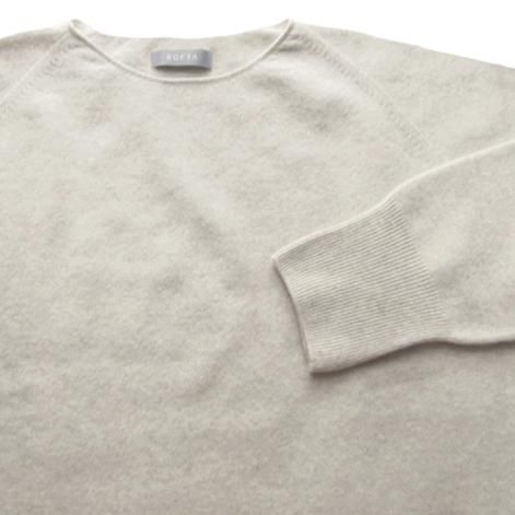 オーストラリア産のメリノ種の中でも特に厳選され、最も最高級とされる『エクストラファインラムズウール』を使用しています。カシミアと同等の極々細い繊維のみを使用し、まるでカシミアニットのような膨らみ、優しい肌触りがあります。